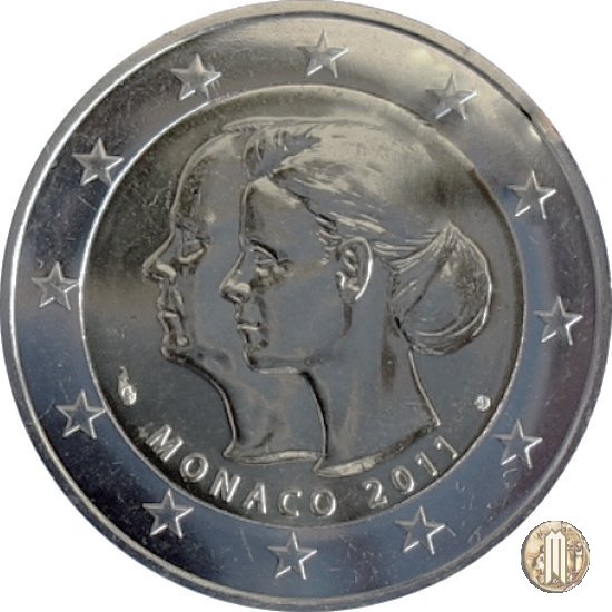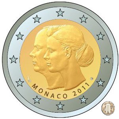 La parte interna della moneta reca, al centro, le effigi del principe Alberto e Charlene Wittstock. In basso il nome del paese emittente "MONACO" e l'anno di emissione "2011", con ai lati a sinistra la cornucopia, simbolo della Zecca di Parigi, e a destra il simbolo del direttore di zecca Yves Sampo, un pentagono con AGMP (Atelier de Gravure de la Monnaie de Paris et Pessac). Sul bordo esterno 12 stelle a cinque punte rappresentanti l'Unione Europea. Autore: Robert Prat