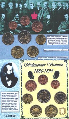 2 Blister dedicato a Wilhelm Steinitz (1836-1900), scacchista israelita di origine boera. Blister impacchettato dalla Bayerisches Hauptmünzamt di Monaco di Baviera.