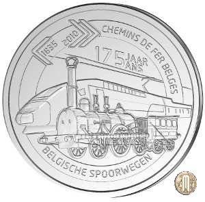 Cartina dell'Europa circondata da 12 stelle. Legenda: BELGIQUE-BELGIE-BELGIEN 5 EURO 2010