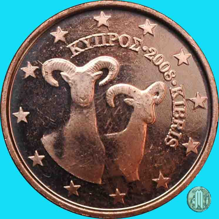 Al centro due mufloni, il primo di fronte e il secondo leggermente volto a dx, con intorno la scritta "ΚΥΠΡΟΣ • millesimo • KIBRIS". Intorno, 12 stelle a cinque punte a rappresentare l'Unione Europea. Faccia comune
