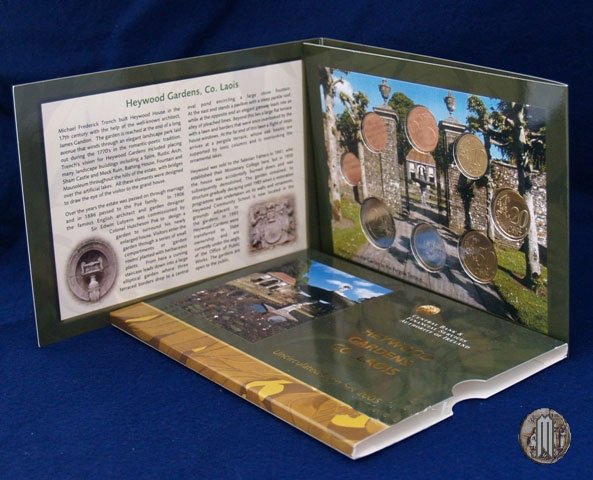2005 Heywood Gardens, Co. Laois Versione: Fior di Conio. Numero di monete: 8. Valori nominali: 2 e 1 Euro; 50, 20, 10, 5, 2, 1 Eurocent (prezzo emissione 22 Euro). | |||||||||