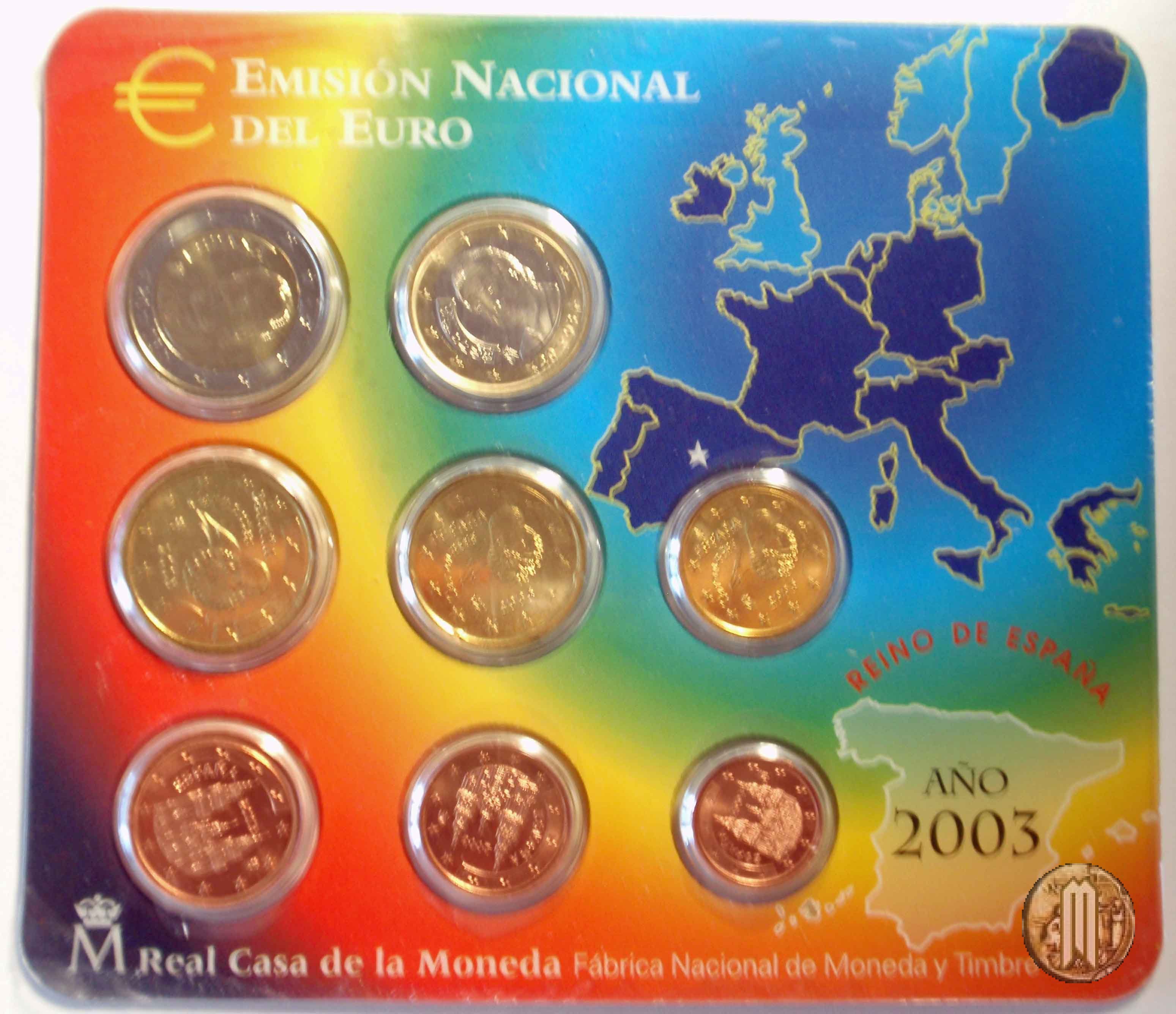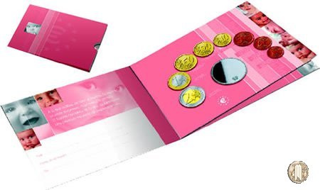 2003 Versione: Fior di Conio. Numero di monete: 8. Valori nominali: 2 e 1 Euro; 50, 20, 10, 5, 2, 1 Eurocent (prezzo di emissione in euro: 14,00). 2003 Baby Set Versione: Fior di Conio. Numero di monete: 8. Valori nominali: 2 e 1 Euro; 50, 20, 10, 5, 2, 1 Eurocent (prezzo di emissione in euro: 19,25). | |||||||||||