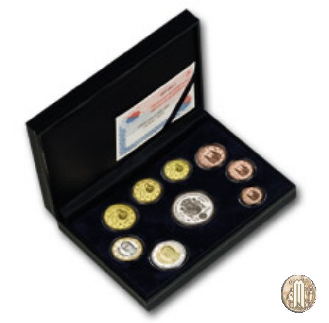 Versione: Fondo Specchio. Numero di monete: 9. Valori nominali: 12, 2 e 1 Euro; 50, 20, 10, 5, 2, 1 Eurocent (prezzo di emissione in euro: 87,00).