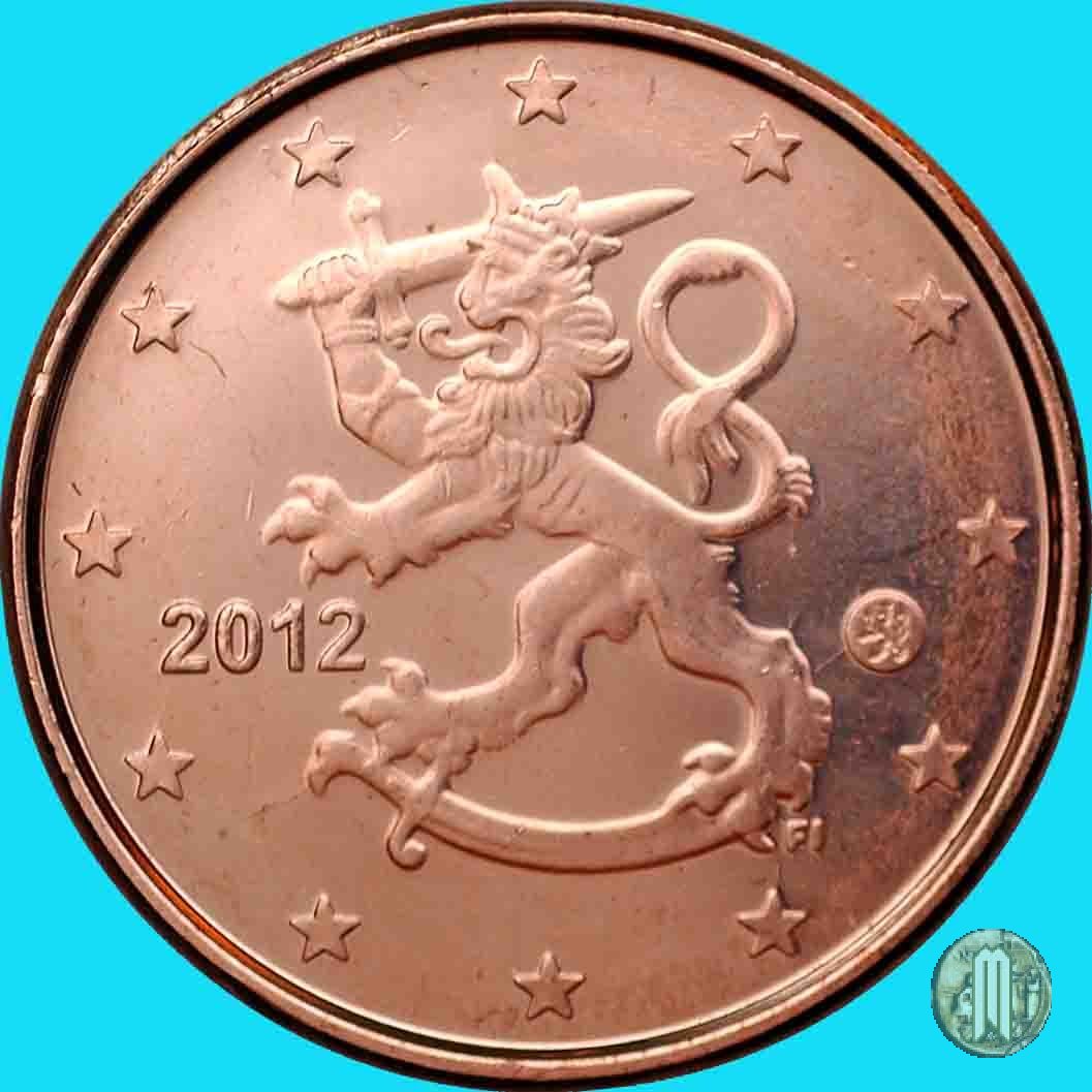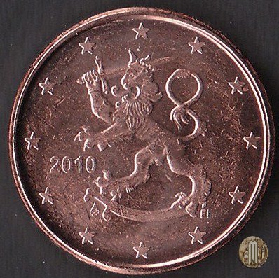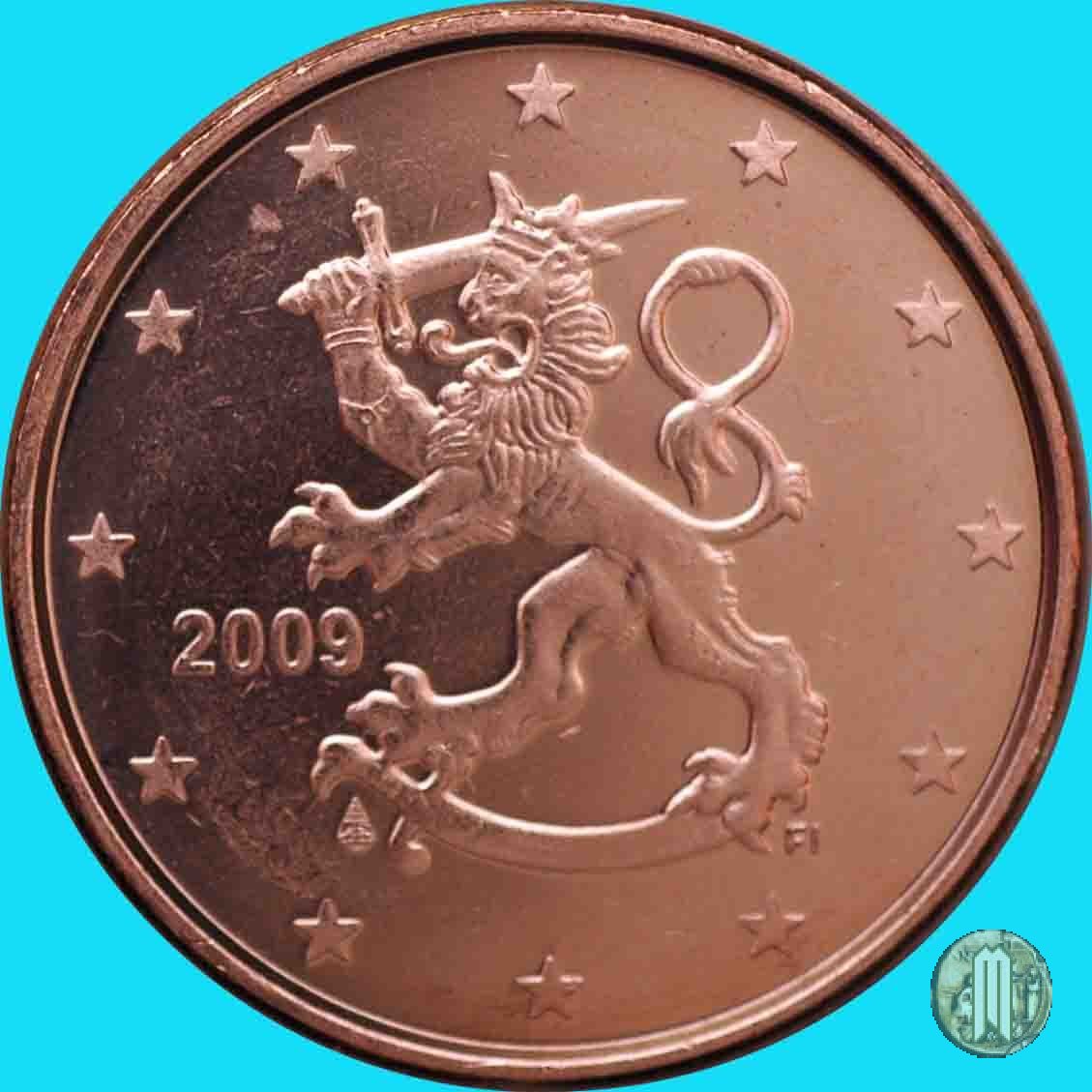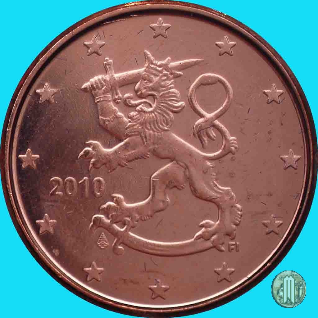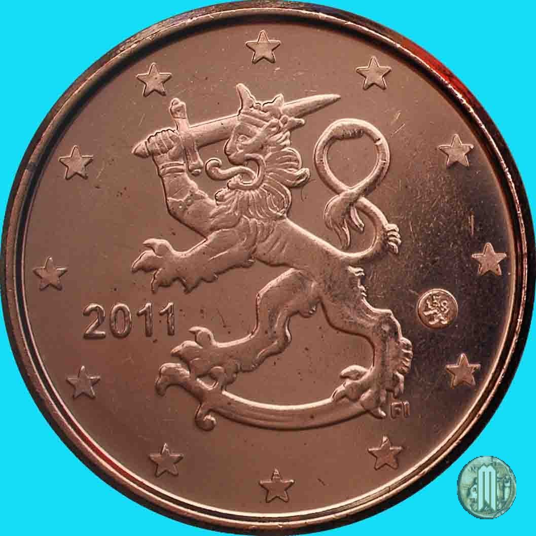 Il Leone Araldico, simbolo dello stato, a sx del quale è il millesimo di conio. Sotto l'elsa della spada "M" (Direttore Zecca Makkonen Raimo). Intorno le 12 stelle simbolo della UE. Autore: Heikki Haivajoa.