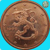 Il Leone Araldico, simbolo dello stato, a sx del quale è il millesimo di conio. Sotto l'elsa della spada "M" (Direttore Zecca Makkonen Raimo). Intorno le 12 stelle simbolo della UE. Autore: Heikki Haivajoa.