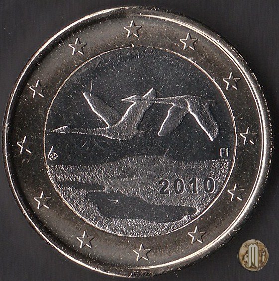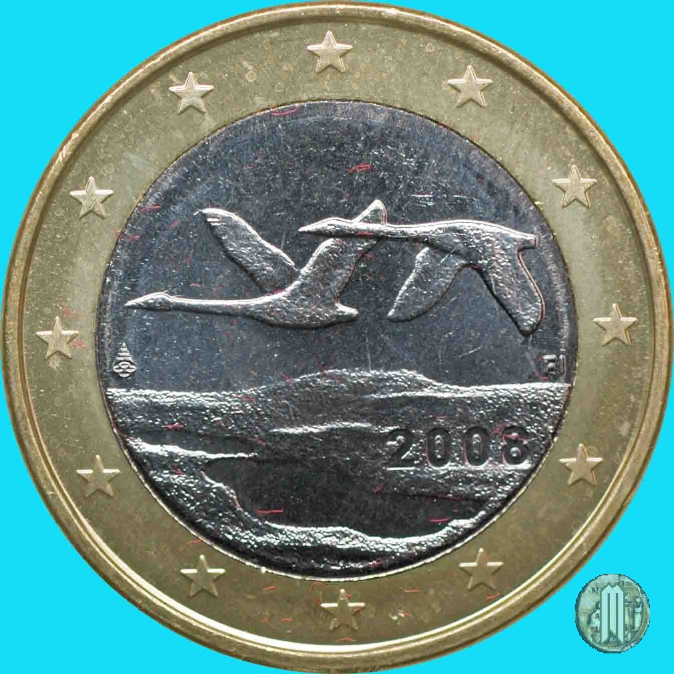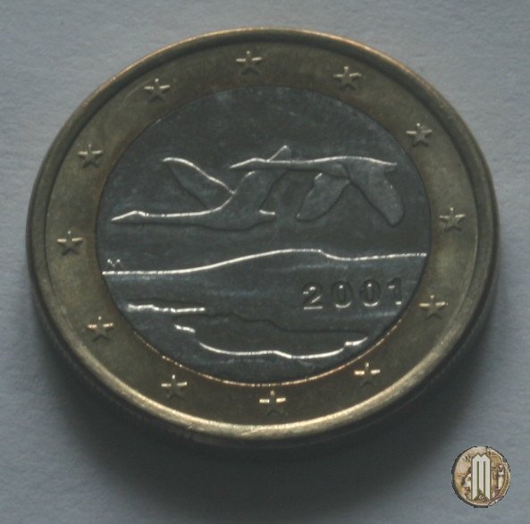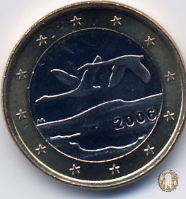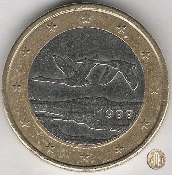Due cigni in volo verso sinistra sopra un lago, opera dell'artista Pertti Makinen e vincitrice di un concorso indetto proprio a tale scopo. In basso ai cigni sulla destra l'anno di conio e sulla sinistra il simbolo del Direttore Makkonen Raimo "M". Intorno le 12 stelle simbolo dell'UE.