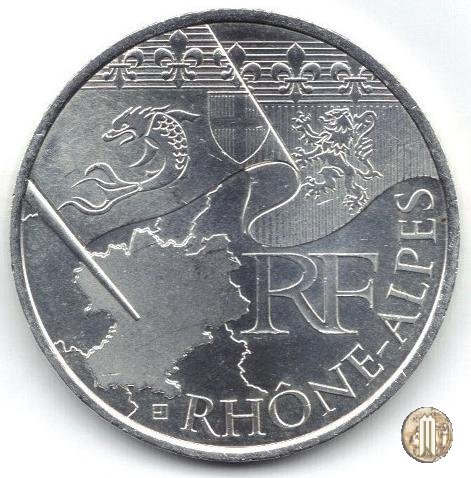 Variabile da moneta a moneta, contiene immagini riferibili alla singola regione commemorata. All'interno di tre esagoni, legenda: LIBERTÉ ÉGALITÉ FRATERNITÉ. Al centro: corona di alloro e di quercia. Sovrimpresso alla corona: valore facciale. Al centro tra la legenda: simbolo del direttore della zecca, simbolo della zecca di Parigi.