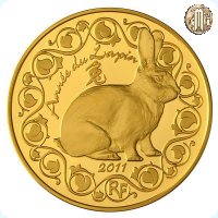 In primo piano: coniglio. Sopra, in circolo interno, legenda: Année du Lapin e medesima legenda in lingua cinese. In basso: anno di emissione. In circolo esterno: cornice con motivo orientale, lettere RF.