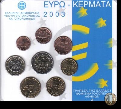 2003 Versione: Fior di Conio. Numero di monete: 8. Valori nominali: 2 e 1 Euro; 50, 20, 10, 5, 2, 1 Eurocent. 2003 Presidency Set Versione: Fior di Conio. Numero di monete: 9. Valori nominali: 10, 2 e 1 Euro; 50, 20, 10, 5, 2, 1 Eurocent. | |||||||||