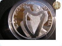 Donna con arpa celtica, con iscrizione che segue il bordo: "ivan mestrovic 1883. - 1962." Quadrifoglio con due foglie quadrate; in una foglia l'anno "2007" nell'altra il disegno dell'arpa celtica. Una scritta in alto "Eire" e una sotto il disegno, "15 euro".