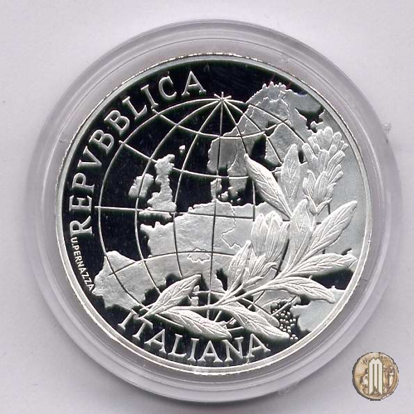 Moneta emessa in un Dittico con il 5 Euro L'Europa dei Popoli Decreto Emissione: Decreto 15 Aprile 2003 n° 37806 GU 113 del 17 Maggio 2003 Decreto Corso Legale: Decreto 20 Novembre 2003 n° 105880 GU 291 del 16 Dicembre 2003 Decreto Rideterminazione Contingente: Decreto 7 Giugno 2004 n° 54448 GU 152 del 1° Luglio 2004 Corso Legale: 15 Dicembre 2003 | |||||||||