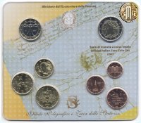 2007 Versione: Fior di Conio. Numero di monete: 8. Valori nominali: 2 e 1 Euro; 50, 20, 10, 5, 2, 1 Eurocent (prezzo di emissione in euro: 22,00). 2007 5° Anniversario della ratifica del Protocollo di Kyoto Versione: Fior di Conio. Numero di monete: 9. Valori nominali: 5, 2 e 1 Euro; 50, 20, 10, 5, 2, 1 Eurocent (prezzo di emissione in euro: 43,00). | |||||||||||