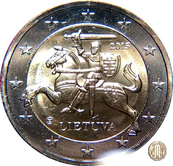 Contorno: Rigato fine "LAIVSE' VIENYBE' GEROVE'" cioè "LIBERTÀ, UNITÀ, PROSPERITÀ" in lituano intervallato da tre stelle