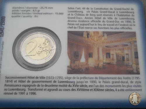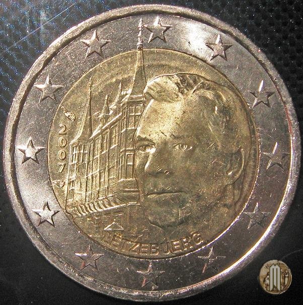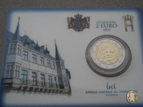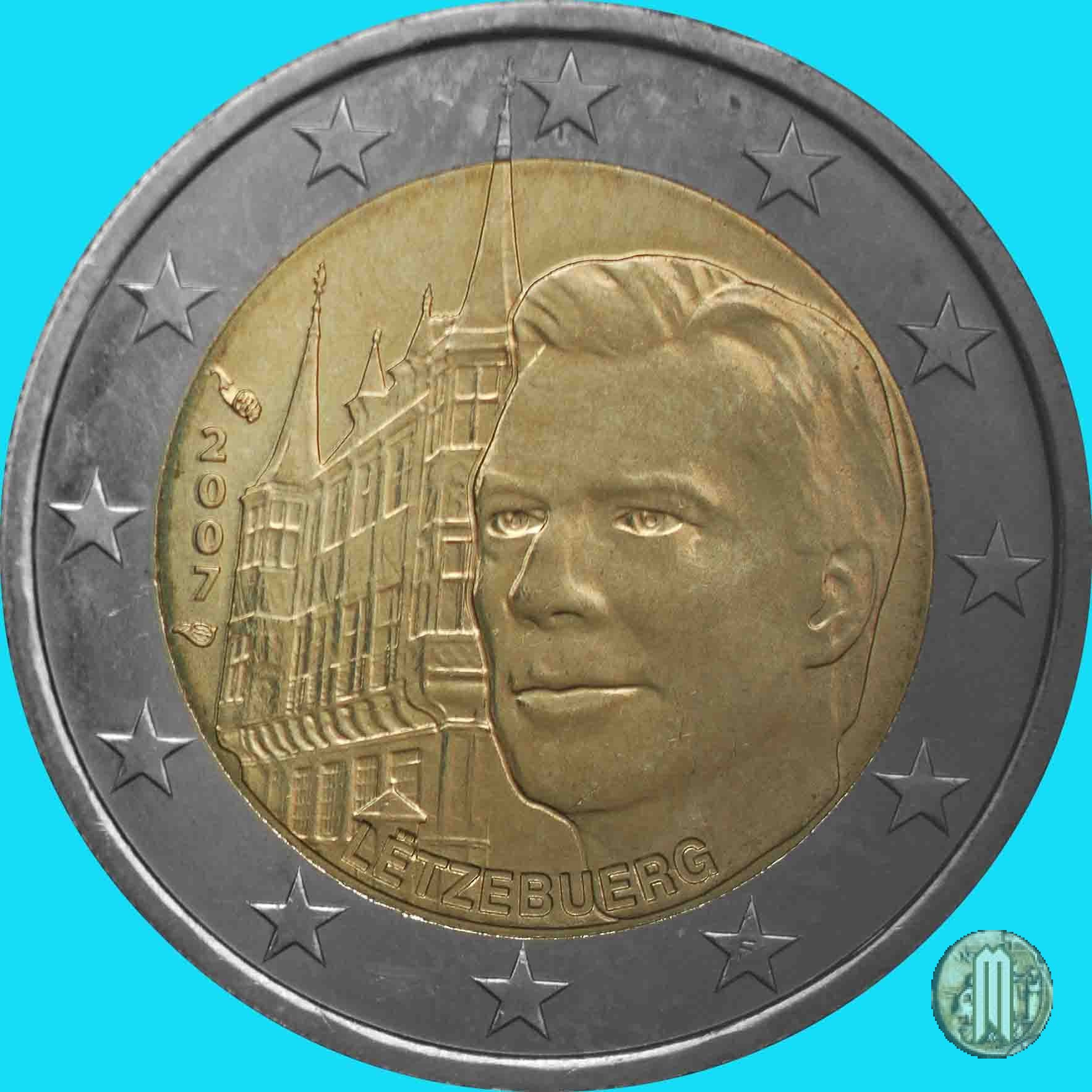 A sinistra, in secondo piano, immagine della facciata principale del Palazzo Granducale di Lussemburgo, sito nella città alta, a destra e in primo piano un ritratto del Granduca Henri visto ai tre quarti. A sinistra del palazzo la data "2007" con sotto il simbolo del Direttore Hubert Larivière (un corno) e il segno della zecca di Parigi (una cornucopia). In basso seguendo la circonferenza la scritta "LËTZEBUERG". Nella stella a ore 5 una "F" indicativa della Francia. Intorno, sul tondello esterno, le 12 stelle simbolo dell'UE. Faccia comune ( NUOVO DISEGNO )
