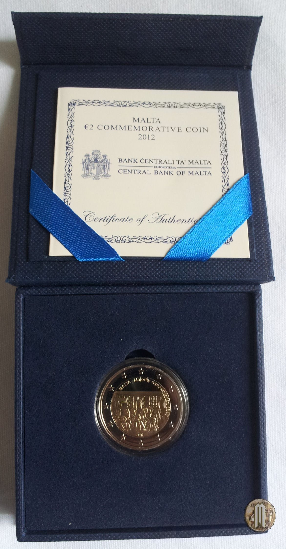 | E inclusa nella Divisionale BU 2012 (50.000 con segni di zecca, assenti nelle circolanti)) e in un Cofanetto FS. Emessa il 15 ottobre 2012 per commemorare la concessione ai maltesi nel 1887 di avere la maggioranza nellassemblea nazionale. | ||||||||