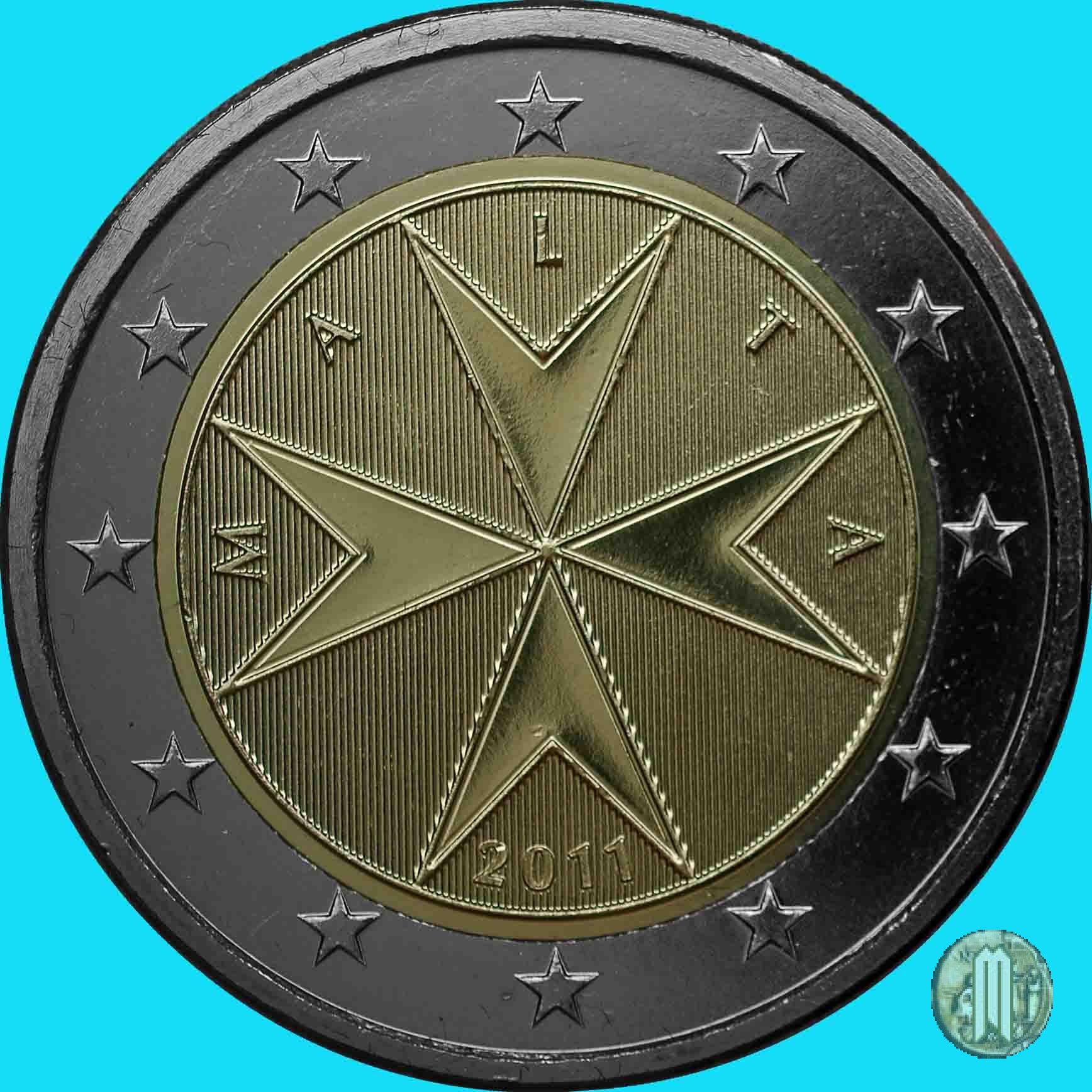 Croce a otto punte (croce di Malta) che va a dividere la scritta "MALTA" nella metà superiore della moneta. Sotto, il millesimo di conio. Nella stella a ore 6 la lettera "F" ad indicare la zecca francese. Intorno, 12 stelle a cinque punte, a rappresentare l'Unione Europea. Faccia comune (NUOVO DISEGNO)