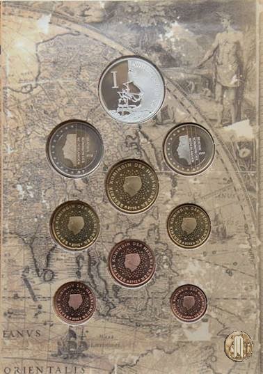 2002 400 jaar VOC 1602-2002 (I) - De oprichting van de VOC (400° anniversario della VOC 1602-2002 - La fondazione della Compagnia Olandese delle Indie Orientali) Versione: Fior di Conio. Numero di monete: 8. Valori nominali: 2 e 1 Euro; 50, 20, 10, 5, 2, 1 Eurocent (prezzo di emissione in euro: 21,95). 2002 400 jaar VOC 1602-2002 (II) - De schepen van de VOC (400° anniversario della VOC 1602-2002 - Le navi della Compagnia Olandese delle Indie Orientali) Versione: Fior di Conio. Numero di monete: 8. Valori nominali: 2 e 1 Euro; 50, 20, 10, 5, 2, 1 Eurocent (prezzo di emissione in euro: 21,95). 2002 400 jaar VOC 1602-2002 (III) - De routes van de VOC (400° anniversario della VOC 1602-2002 - Le rotte della Compagnia Olandese delle Indie Orientali) Versione: Fior di Conio. Numero di monete: 8. Valori nominali: 2 e 1 Euro; 50, 20, 10, 5, 2, 1 Eurocent (prezzo di emissione in euro: 21,95). 2002 400 jaar VOC 1602-2002 (IV) - De helden van de VOC (400° anniversario della VOC 1602-2002 - Gli eroi della Compagnia Olandese delle Indie Orientali) Versione: Fior di Conio. Numero di monete: 8. Valori nominali: 2 e 1 Euro; 50, 20, 10, 5, 2, 1 Eurocent (prezzo di emissione in euro: 21,95). 2003 400 jaar VOC 1602-2002 (V) - De handelswaar van de VOC (400° anniversario della VOC 1602-2002 - Le merci della Compagnia Olandese delle Indie Orientali) Versione: Fior di Conio. Numero di monete: 8. Valori nominali: 2 e 1 Euro; 50, 20, 10, 5, 2, 1 Eurocent (prezzo di emissione in euro: 21,95). 2003 400 jaar VOC 1602-2002 (VI) - Hel geld van de VOC (400° anniversario della VOC 1602-2002 - Il denaro della Compagnia Olandese delle Indie Orientali) Versione: Fior di Conio. Numero di monete: 8. Valori nominali: 2 e 1 Euro; 50, 20, 10, 5, 2, 1 Eurocent (prezzo di emissione in euro: 21,95). | |||||||||||||||||