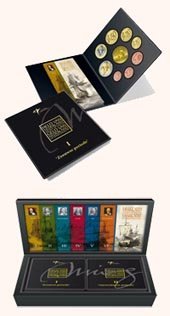 2007 Held van Nederland: Michiel de Ruyter - Geld van Nederland: de goud collectie (I): "De Zeeuwse Tijd" (Eroi dei Paesi Bassi: Michiel de Ruyter - Monete dei Paesi Bassi: la collezione d'oro (I): "Il periodo zeelandese") Versione: Fondo Specchio. Numero di monete: 8. Valori nominali: 2 e 1 Euro; 50, 20, 10, 5, 2, 1 Eurocent (prezzo di emissione in euro: ). 2007 Held van Nederland: Michiel de Ruyter - Geld van Nederland: de goud collectie (II): "De Amsterdamse Tijd" (Eroi dei Paesi Bassi: Michiel de Ruyter - Monete dei Paesi Bassi: la collezione d'oro (II): "Il periodo ad Amsterdam") Versione: Fondo Specchio. Numero di monete: 8. Valori nominali: 2 e 1 Euro; 50, 20, 10, 5, 2, 1 Eurocent (prezzo di emissione in euro: ). 2007 Held van Nederland: Michiel de Ruyter - Geld van Nederland: de goud collectie (III): "Beroemde Zeeslagen" (Eroi dei Paesi Bassi: Michiel de Ruyter - Monete dei Paesi Bassi: la collezione d'oro (III): "Battaglie navali famose") Versione: Fondo Specchio. Numero di monete: 8. Valori nominali: 2 e 1 Euro; 50, 20, 10, 5, 2, 1 Eurocent (prezzo di emissione in euro: ). 2007 Held van Nederland: Michiel de Ruyter - Geld van Nederland: de goud collectie (IV): "Beroemde Schepen" (Eroi dei Paesi Bassi: Michiel de Ruyter - Monete dei Paesi Bassi: la collezione d'oro (IV): "Navi famose") Versione: Fondo Specchio. Numero di monete: 8. Valori nominali: 2 e 1 Euro; 50, 20, 10, 5, 2, 1 Eurocent (prezzo di emissione in euro: 21,95). 2007 Held van Nederland: Michiel de Ruyter - Geld van Nederland: de goud collectie (V): "Belangrijke Eerbewijzen" (Eroi dei Paesi Bassi: Michiel de Ruyter - Monete dei Paesi Bassi: la collezione d'oro (V): "Onorificenze maggiori") Versione: Fondo Specchio. Numero di monete: 8. Valori nominali: 2 e 1 Euro; 50, 20, 10, 5, 2, 1 Eurocent (prezzo di emissione in euro: ). 2007 Held van Nederland: Michiel de Ruyter - Geld van Nederland: de goud collectie (VI): "De Ruyter jaar" (Eroi dei Paesi Bassi: Michiel de Ruyter - Monete dei Paesi Bassi: la collezione d'oro (VI): "L'anno De Ruyter") Versione: Fondo Specchio. Numero di monete: 9. Valori nominali: 10, 2 e 1 Euro; 50, 20, 10, 5, 2, 1 Eurocent (prezzo di emissione in euro: ). 2007 Nationale Collectie (Collezione nazionale) Versione: Fondo Specchio. Numero di monete: 9. Valori nominali: due volte 2 e una volta 1 Euro; 50, 20, 10, 5, 2, 1 Eurocent (prezzo di emissione in euro: 57,50). | |||||||||||||||||||