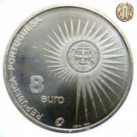 In alto a destra lo scudo nazionale portoghese nella sfera armillare tutt'attorno raggi a spirale, sul giro il logo del Programma Europa, segue verso sinistra la leggenda REPÚBLICA PORTUGUESA , a destra il nome dell'autore e il simbolo di zecca.