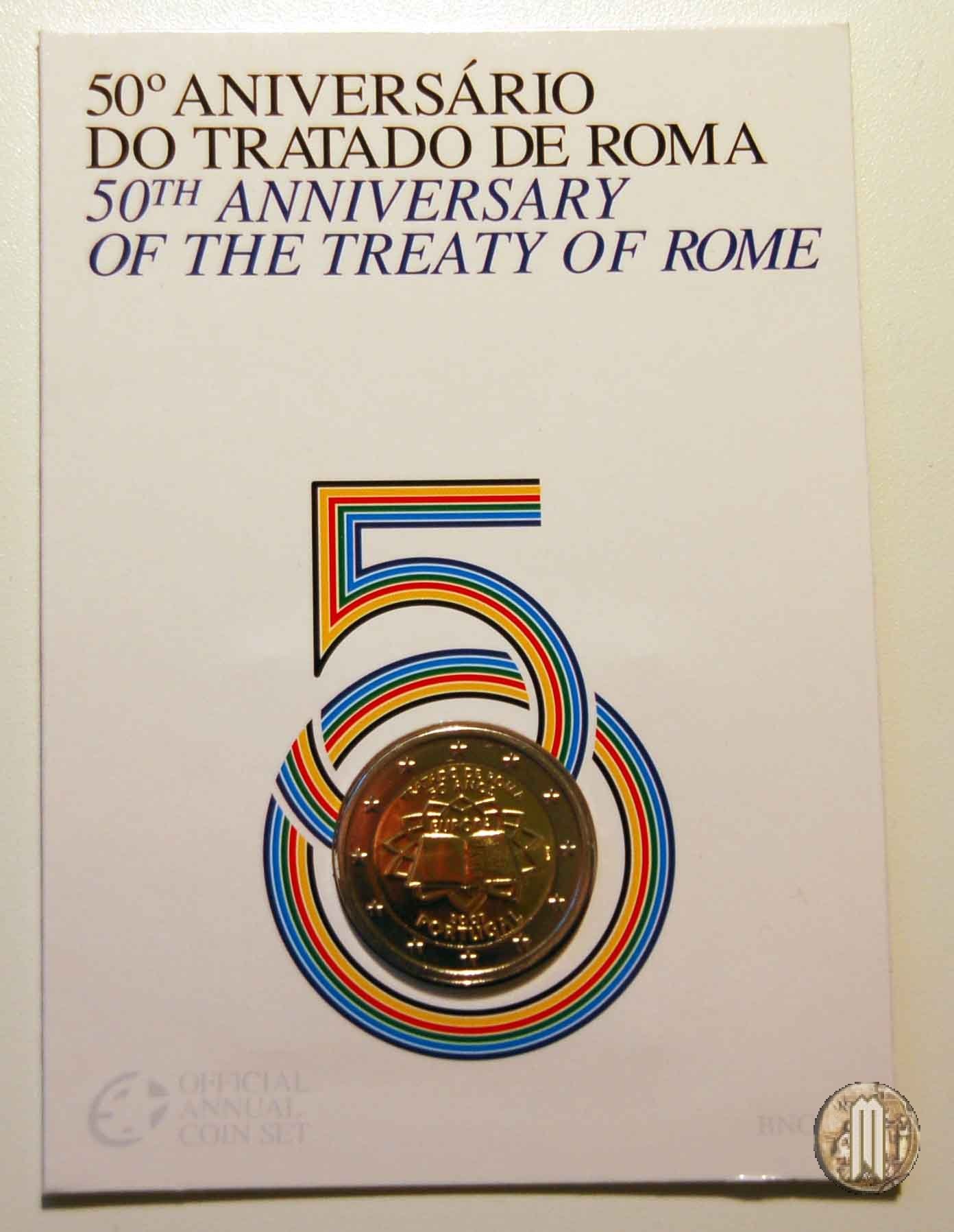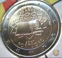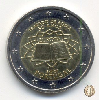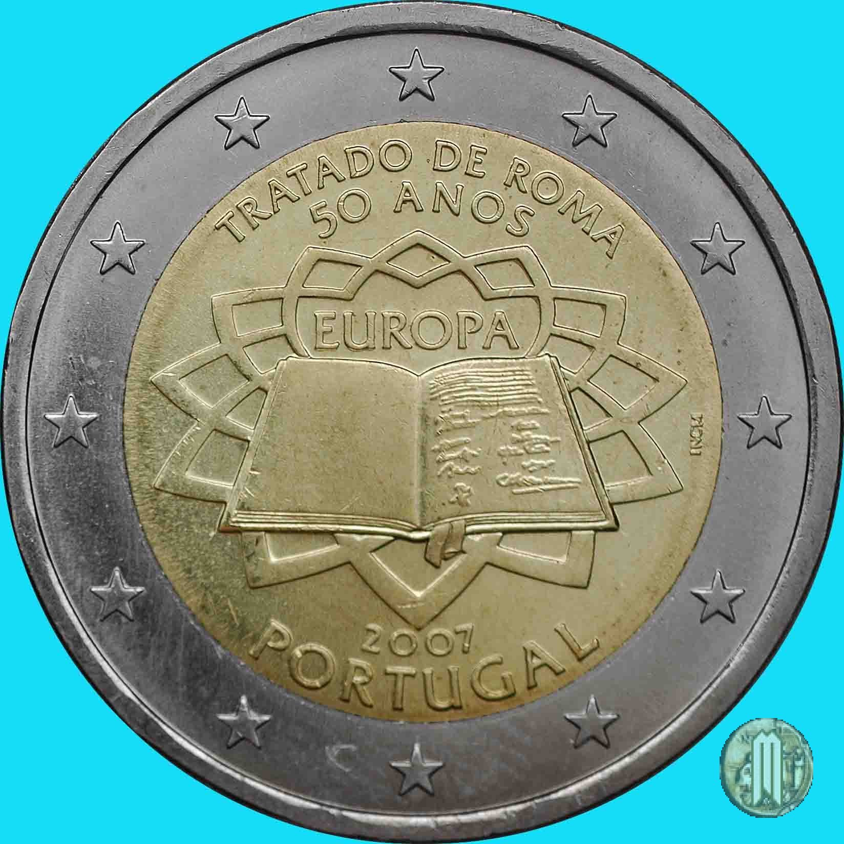 Al centro della moneta il trattato firmato dai sei Stati membri fondatori, sormontato dalla parola "EUROPA"; sul fondo la pavimentazione, disegnata da Michelangelo, di Piazza del Campidoglio a Roma dove sono stati firmati i Trattati il 25 marzo 1957. In basso, il millesimo di conio "2007" con sotto la scritta "PORTUGAL". In alto, su due righe, "TRATADO DE ROMA/50 ANOS"; a destra, in verticale il simbolo di zecca "INCM". Intorno le 12 stelle simbolo dell'UE. Faccia comune ( NUOVO DISEGNO )