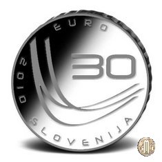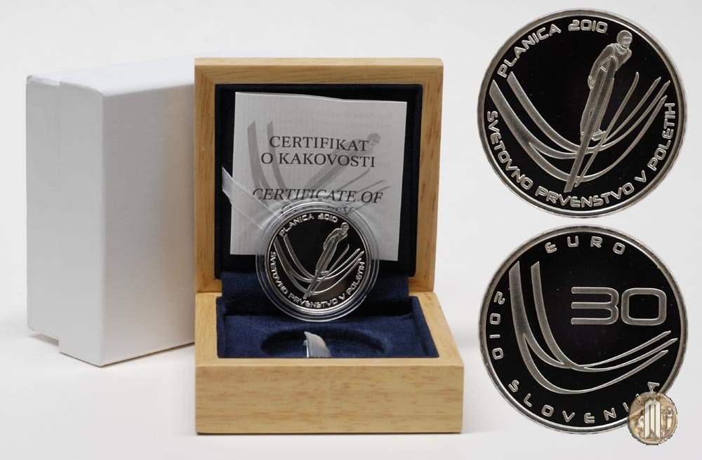 Trampolino stilizzato. Legenda: 2010 SLOVENIJA - 30 EURO
