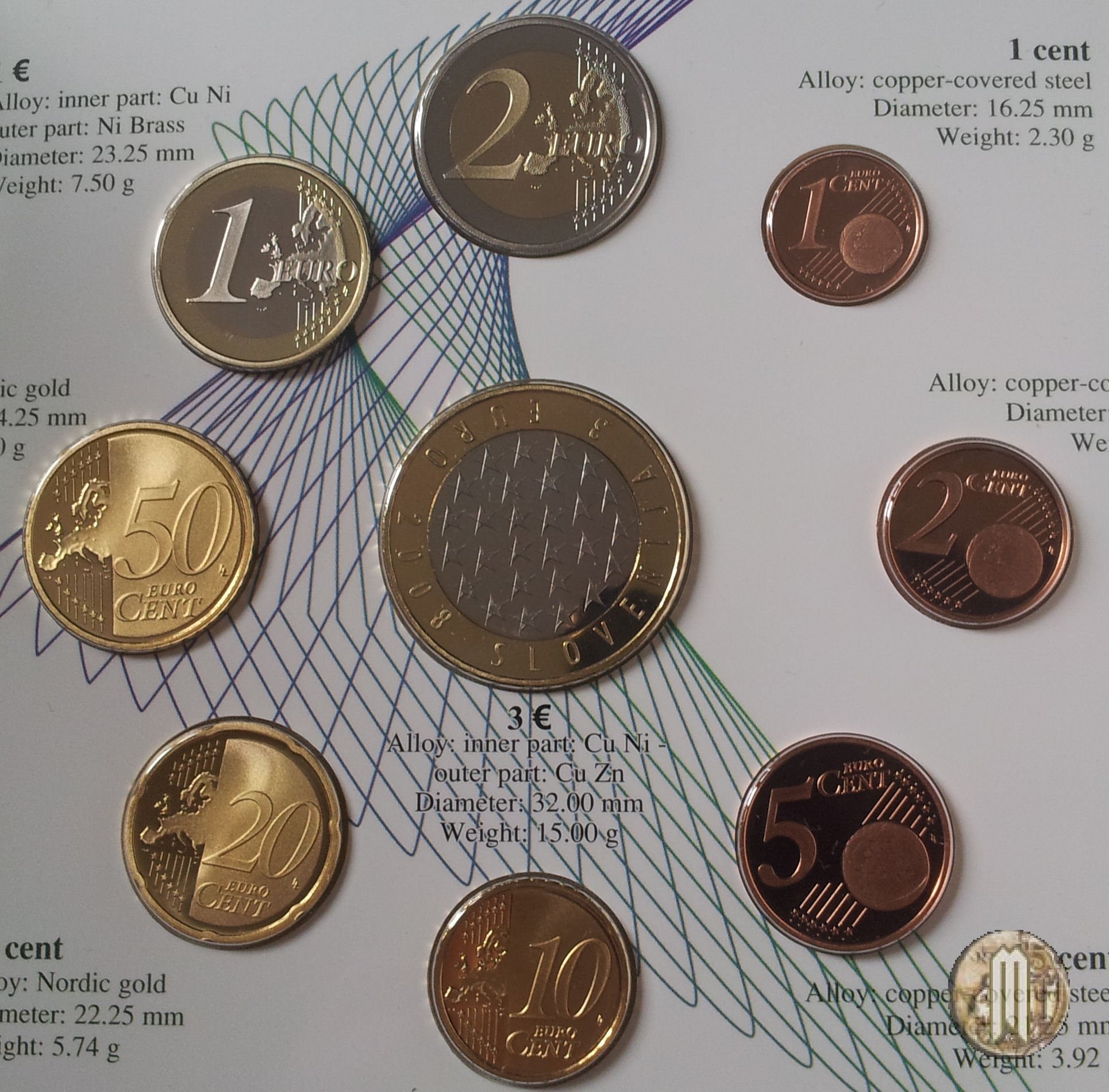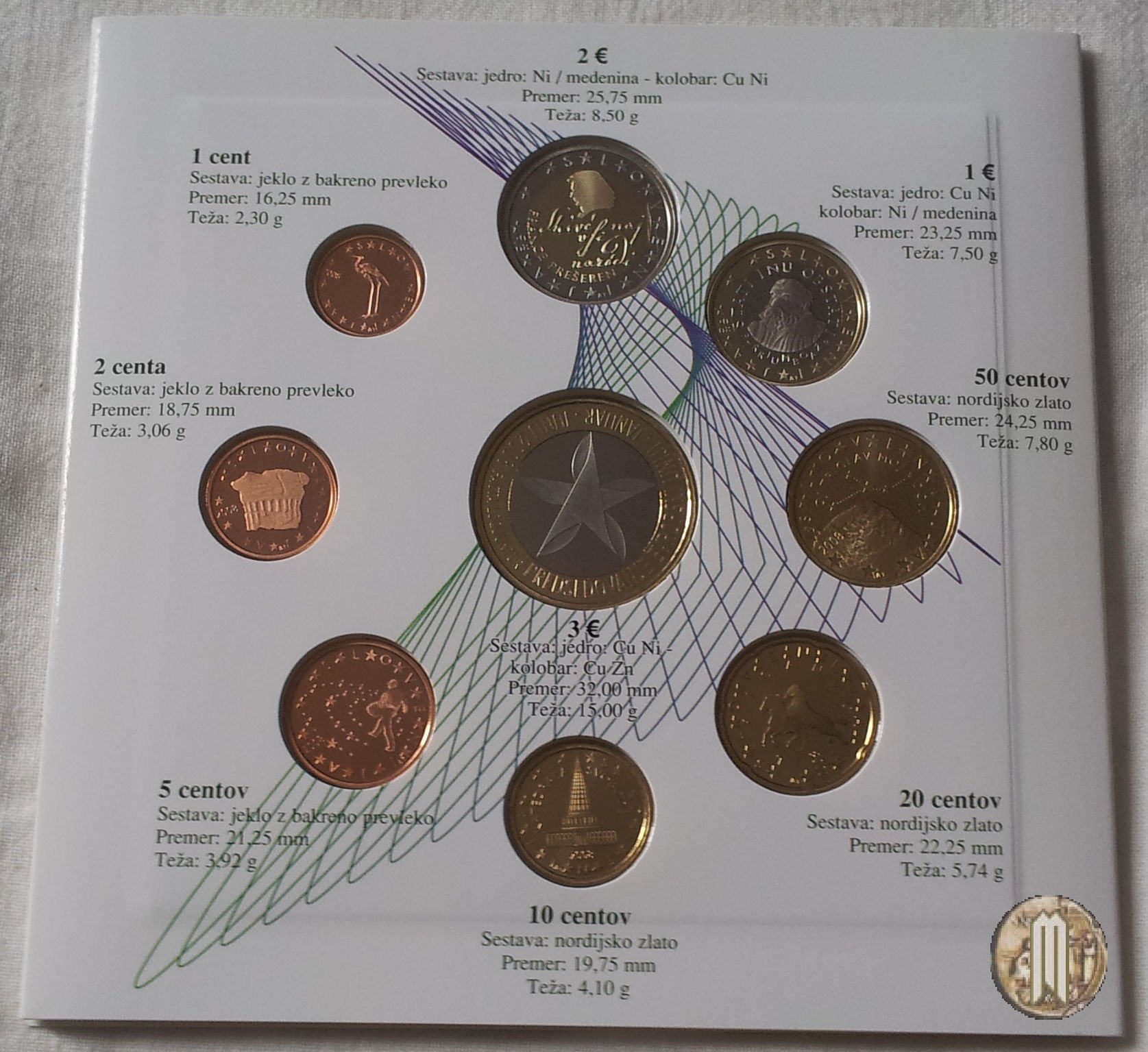 2008 Versione: Fondo Specchio. Numero di monete: 9. Valori nominali: 3, 2 e 1 Euro; 50, 20, 10, 5, 2, 1 Eurocent (prezzo emissione 25 Euro). | |||||||||||