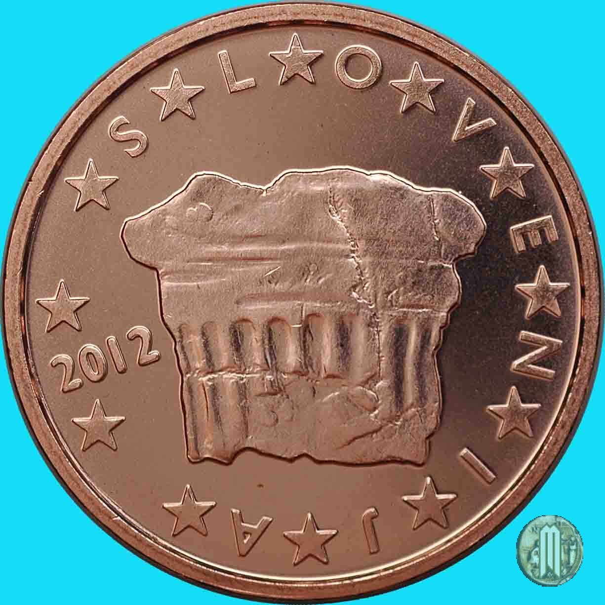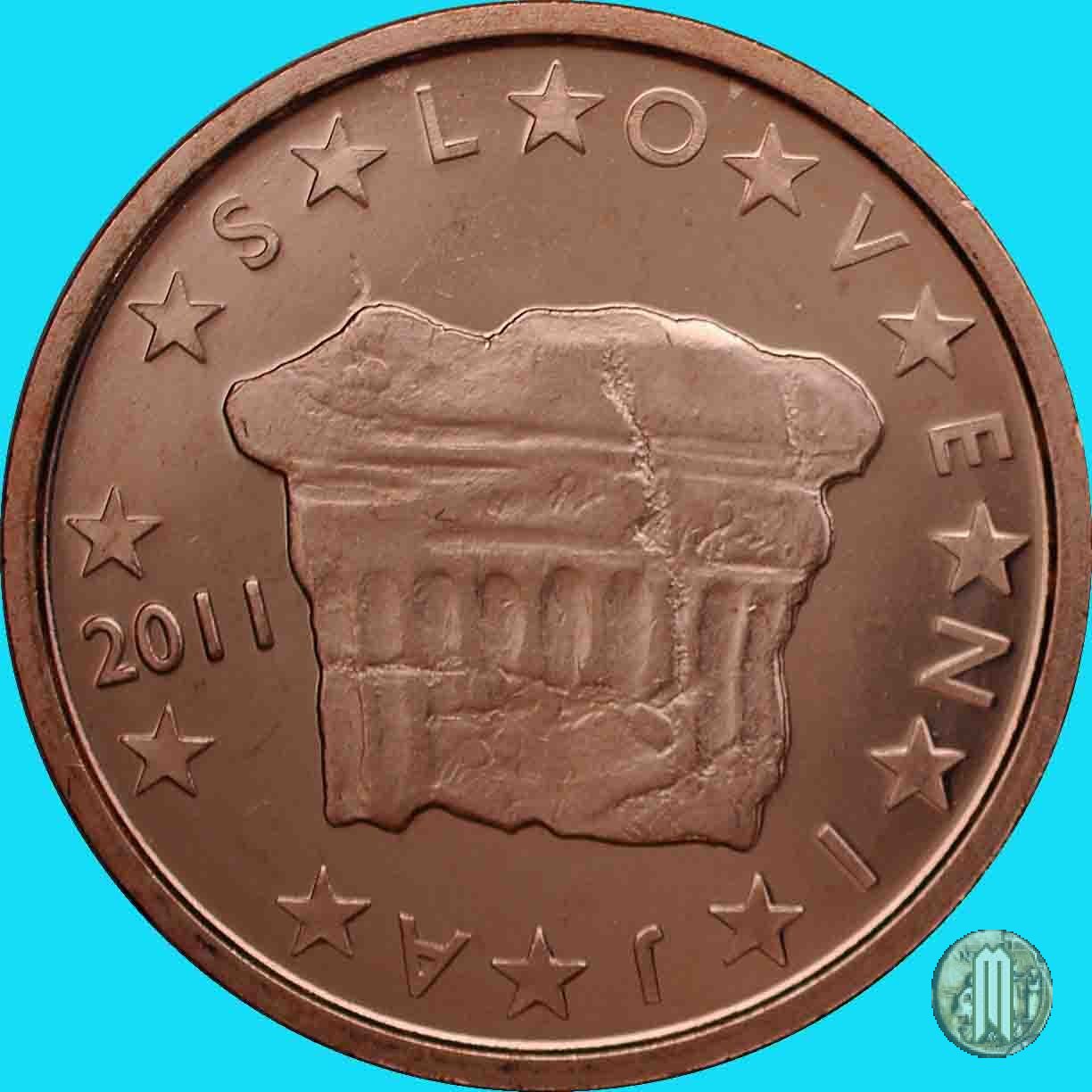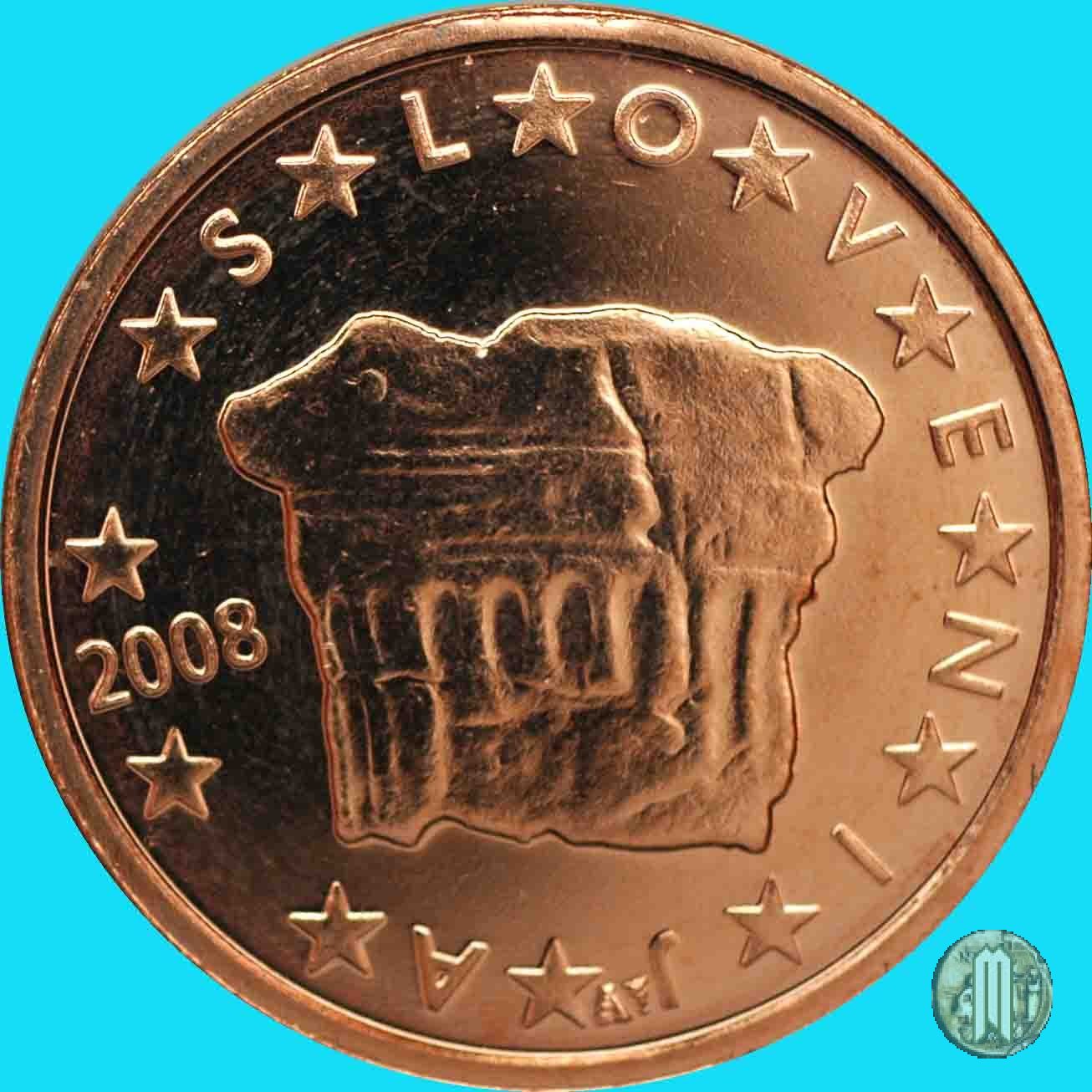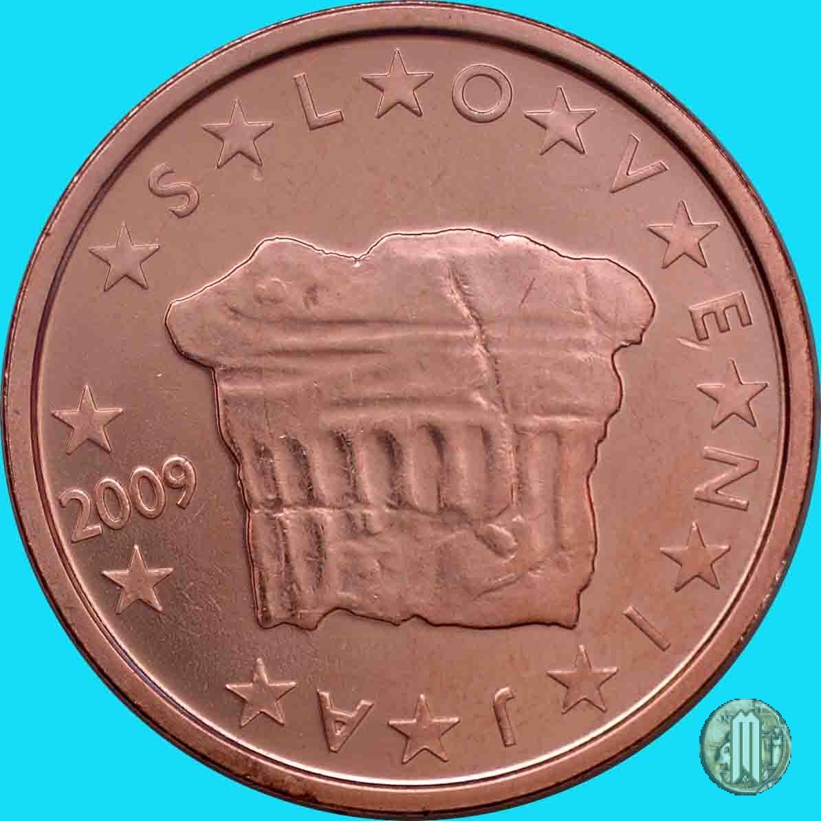 Al centro la "Roccia del Principe", dove si installò il primo duca della Carinzia. Sulla sinistra il millesimo di conio. Accanto alla stella a ore 6 la scritta "FI" per la Zecca finlandese. Intorno le 12 stelle simboleggianti l'UE, intervallate nella parte destra dalla scritta "SLOVENIJA".