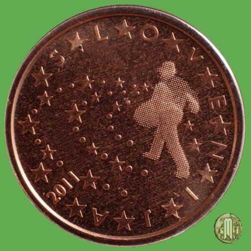 Al centro la rappresentazione di un dipinto di Grobar che rappresenta un seminatore di stelle. In basso sulla sinistra l'anno di conio. Accanto alla stella a ore 6 la scritta "FI" per la Zecca finlandese. Intorno le 12 stelle simboleggianti l'UE, intervallate nella parte destra dalla scritta "SLOVENIJA".