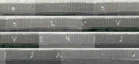 | Contorno: Scritta "SLOVENIJA •" su un contorno rigato. | ||||||||||