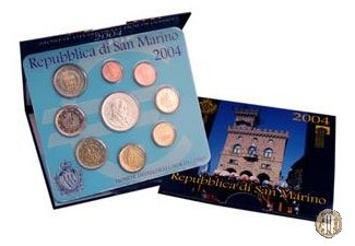 2004 Versione: Fior di Conio. Numero di monete: 9. Valori nominali: 5, 2 e 1 Euro; 50, 20, 10, 5, 2, 1 Eurocent (prezzo di emissione in euro: 40,00).