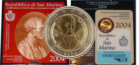 | 2 Euro 2004 Centenario delle Celebrazioni di Bartolomeo Borghesi (Moneta commemorativa) | |||||||||