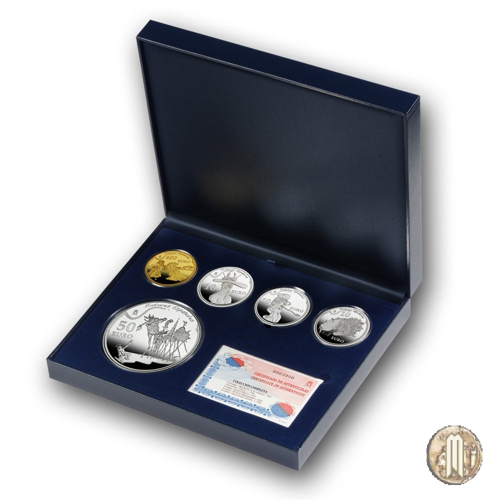 | Questa 2° emissione della serie Pintores Españoles è dedicata a Salvador Dalí e si compone di 5 monete: in argento 3 da 10 euro e 1 da 50 euro, in oro 1 da 400 euro, sono emesse nelle proprie custodie, e vengono emesse anche due confezioni speciali: la prima contiene i 4 valori in argento e l'altra contiene tutti i 5 valori. | ||||||