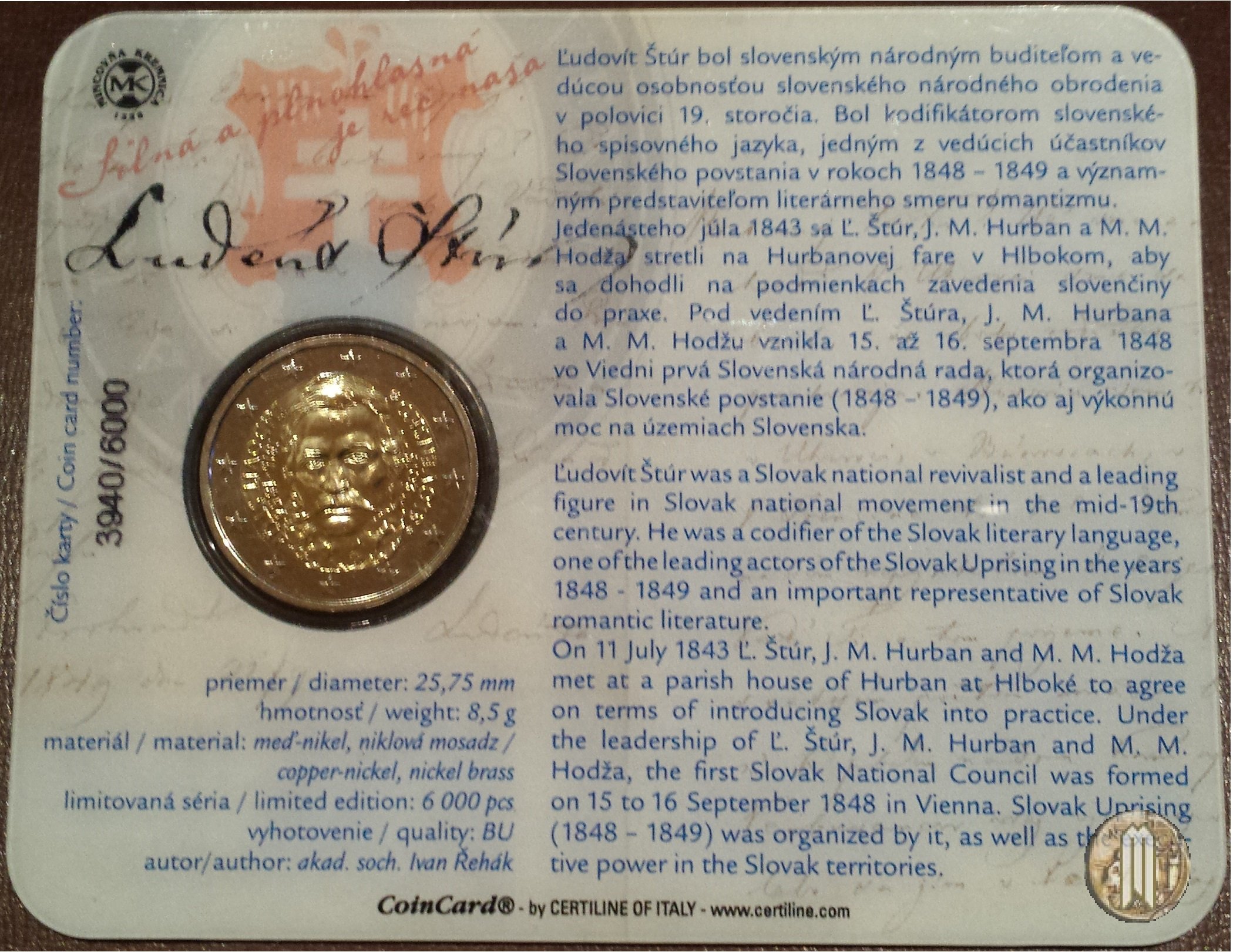 | 2 Euro 2015 200° anniv. nascita L'udovít Štúr