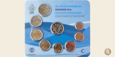 2010 40. výročie Slovenskej numizmatickej spoločnosti (40° Anniversario dell'organizzazione numismatica slovacca) Versione: Fior di Conio. Numero di monete: 8. Valori nominali: 2 e 1 Euro; 50, 20, 10, 5, 2, 1 Eurocent (prezzo emissione in euro: ). 2010 Historické regióny Slovenska - Turiec, Tekov, Podsitniansko (Regioni Storiche slovacche - Turiec, Tekov and Podsitniansko) Versione: Fior di Conio. Numero di monete: 8. Valori nominali: 2 e 1 Euro; 50, 20, 10, 5, 2, 1 Eurocent (prezzo emissione in euro: 15,99). 2010 Majstrovstvá sveta vo futbale JAR 2010 (Campionati mondiali di calcio in Sudafrica) Versione: Fior di Conio. Numero di monete: 8. Valori nominali: 2 e 1 Euro; 50, 20, 10, 5, 2, 1 Eurocent (prezzo emissione in euro: 18,00). 2010 Narodenie dieťaťa (Baby set) Versione: Fior di Conio. Numero di monete: 8. Valori nominali: 2 e 1 Euro; 50, 20, 10, 5, 2, 1 Eurocent (prezzo emissione in euro: 20,00). 2010 XXI. ZOH Vancouver (XXI Giochi olimpici di Vancouver) Versione: Fior di Conio. Numero di monete: 8. Valori nominali: 2 e 1 Euro; 50, 20, 10, 5, 2, 1 Eurocent (prezzo emissione in euro: 18,00). | |||||||||||