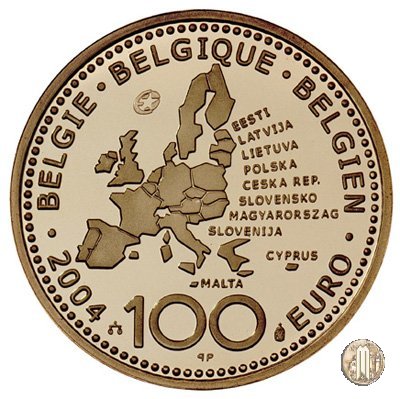 100 Euro 2004 Allargamento Unione Europea Dritto: Riproduzione dei principali monumenti dei 10 nuovi Paesi della U.E. Verso: Cartina dell' Europa con i nomi dei 10 nuovi Paesi che entrano nell'Unione Europea. ![]() ![]() | |
