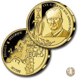 50 Euro 2004 70° compleanno di Alberto II Dritto: Ritratto di Re Alberto II. Verso: Cartina dell'Europa. | |