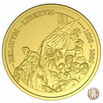 100 Euro 2005 175° di Regno della Dinastia Dritto: Dettaglio del quadro "Scene dei giorni di settembre 1830 sulla Grande Piazza di Bruxelles" dell'artista Gustave Wappers, nel 175° anno dell'Indipendenza del Belgio (4 ottobre 1830). Verso: Profilo di RE Alberto II, monogramma reale e le 12 stelle della U.E. | |