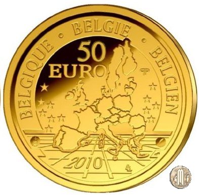 50 Euro 2010 100° Museo Reale Africa Centrale Dritto: Facciata del Museo, una maschera Luba e la statua in calcestruzzo di un elefante Legenda: ROYAL MUSEUM FOR CENTRAL AFRICA - 1910 TERVUREN 2010 ![]() ![]() Verso: Cartina dell'Europa circondata da 12 stelle. Legenda: BELGIQUE-BELGIE-BELGIEN 50 EURO 2010 | |