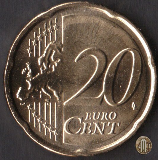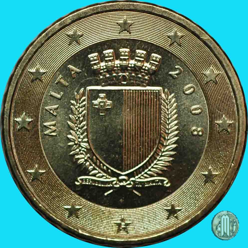 20 centesimi di Euro Dritto: Al centro lo stemma turrito della Repubblica di Malta, sul cui lato sx è la scritta "MALTA", su quello dx il millesimo di conio. Sotto, nel nastro "REPUBBLIKA" e a seguire "TA' MALTA". Nella stella a ore 6 la lettera "F" ad indicare la zecca francese. Intorno, 12 stelle a cinque punte, a rappresentare l'Unione Europea. Verso: Faccia comune (NUOVO DISEGNO) |