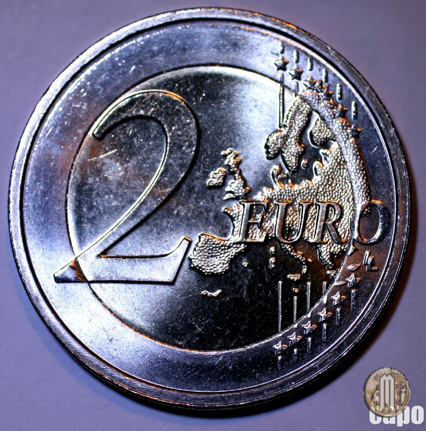 2 Euro 2014 Bicentenario del Corpo di Polizia di Malta Dritto: Il dritto della moneta riproduce il distintivo del Corpo di Polizia maltese con la scritta “200 YEARS - MALTA POLICE FORCE” e gli anni “1814 - 2014”. Sulla corona esterna figurano le 12 stelle dell’Unione europea. Verso: Faccia comune, nuova mappa. |