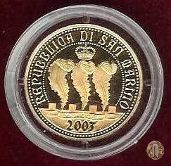 50 Euro 2003 700° ann. Cappella Scrovegni Dritto: Cornice con palliato, in tondo la scritta "REPUBBLICA DI SAN MARINO", al centro tre penne sormontate da una corona, alla base una merlatura con la scritta "LIBERTAS" e l'anno di emissione "2003". Verso: Cornice con palliato, al centro in primo piano, da un dipinto di Giotto la raffigurazione della Pentecoste, sul lato sinistro il simbolo della Zecca Italiana che ne ha curato la coniazione "R", in alto il valore "50", a destra il nome dell'autore "MAURI" ed in basso "EURO". | |