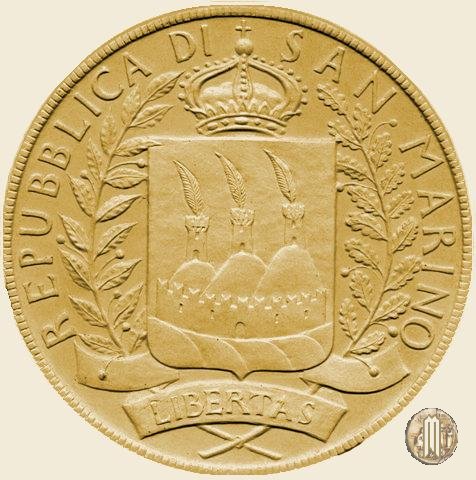 50 Euro 2010 Tesori Sammarinesi Dritto: Stemma stilizzato della Repubblica raffigurante al centro uno scudo che racchiude le Tre Torri sormontate da tre penne. In alto la corona chiusa, in basso il cartiglio con la legenda "LIBERTAS" tra il ramo di ulivo e di quercia. Completano la moneta la scritta "REPUBBLICA DI SAN MARINO" e il nome dell'autore del bozzetto "E.L. FRAPICCINI". Verso: Raffigurazione del particolare della tempera su tela del Santo Marino (di Pittore Toscano), opera del XVI secolo, custodito al Museo di Stato della Repubblica di San Marino. In alto a sinistra l'anno di emissione "2010", a giro la legenda "TESORI SAMMARINESI". Alla base dell'opera il nome dell'autore del bozzetto "V. DE SETA" ed il valore "50 EURO". La moneta è completata dal simbolo "R" della Zecca Italiana che ha curato la coniazione. | |