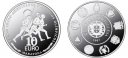 10 Euro 2004 - Jogos Olimpicos Atenas 2004 Dritto: Al centro lo scudo araldico portoghese sormonta il valore nominale. In circolo ai lati la legenda REPUBLICA PORTUGUESA. Verso: Al centro bandiera stilizzata; in alto a sinistra legenda JOGOS OLIMPICOS ATENAS 2004; in basso, anelli olimpici. |