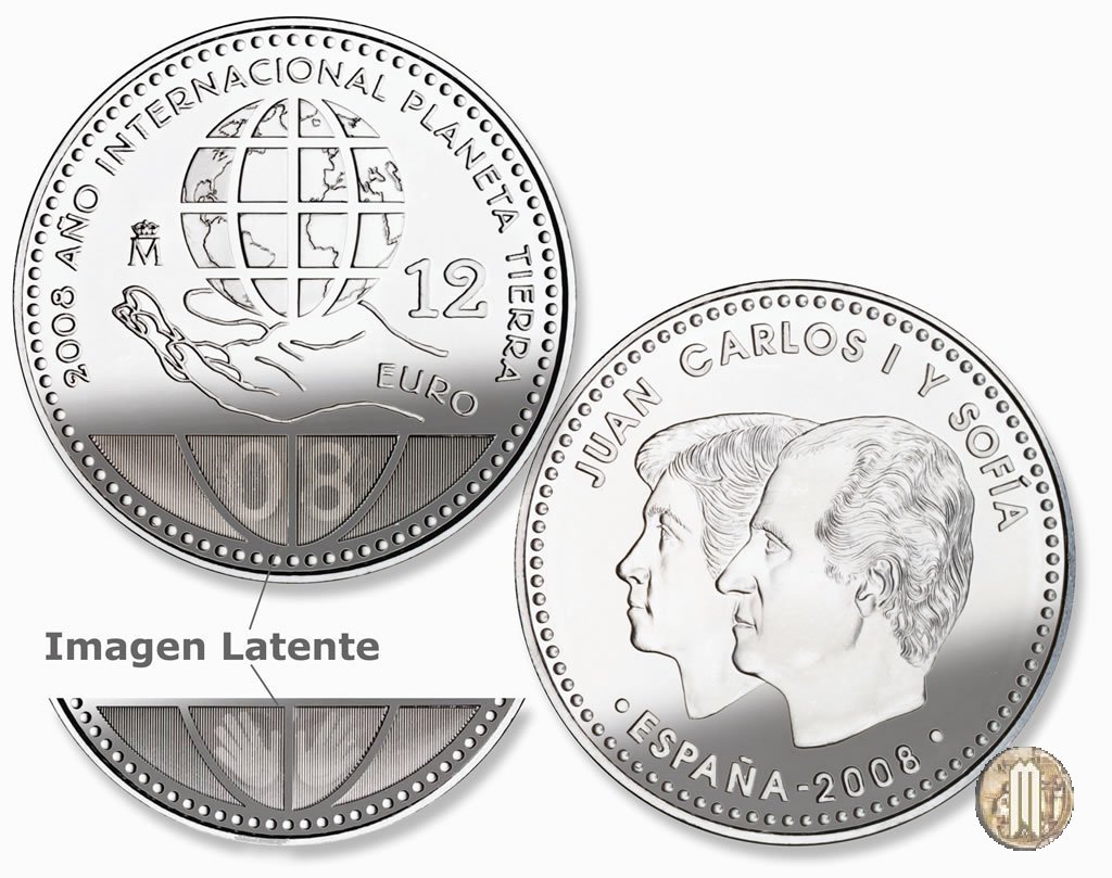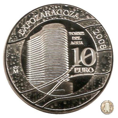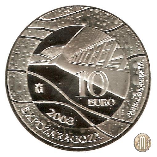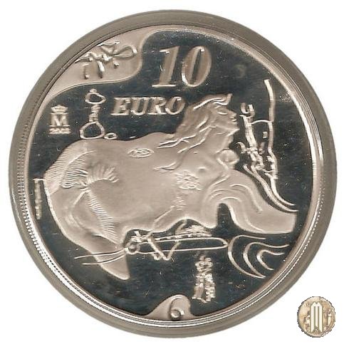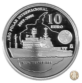 Verso: Al centro: scie che si incrociano varie volte, a simboleggiare l'incrocio tra le bandiere di Spagna, Belgio e Ungheria, presidenti dell'UE. A sinistra: valore facciale. A destra: 8 stelle di dimensioni crescenti. In alto al centro, immagine latente: stella e numero 10. In basso: logo eu. In basso a sinistra: simbolo di zecca. In circolo esterno, in basso, legenda: PRESIDENCIA ESPAÑOLA DE LA UNIÓN EUROPEA 2010.