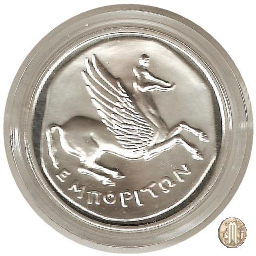 Verso: Immagine della regina Isabella I di Castiglia, sulla base di un ritratto anonimo conservato nel Museo Navale di Madrid, a sinistra il valore nominale e il simbolo di zecca, a destra in circolo la legenda ISABELLA I DI CASTIGLIA e le date 1451 - 1501, sull'orlo della moneta un giro di perle.