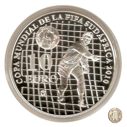 Verso: In primo piano: mani di un portiere che si allungano per prendere un pallone. In alto a destra: valore facciale. In basso a sinistra: segno di zecca. In alto a sinistra, incircolo esterno su due righe, legenda: CAMPEONES DEL MUNDO SUDÁFRICA 2010.