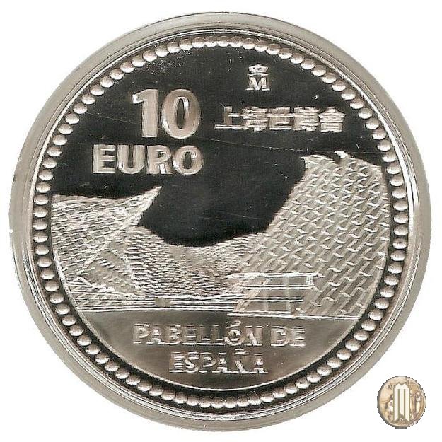 Verso: Al centro: riproduzione del padiglione spagnolo alla fiera Expo di Shanghai. In alto a sinistra: valore facciale. In alto a destra: simbolo di zecca. In alto a destra, in lingua cinese legenda che indica la fiera. In basso su due righe, legenda: Pabellón de España.