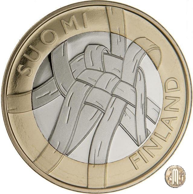 5 Euro 2011 Karjalan - Suomen maakuntarahalla Dritto: Simbolismo dell'artigianato con intreccio di un cesto. Sul giro la legenda 'SUOMI FINLAND'. Verso: Al centro: stemma della provincia e iniziale dell'autore. A sinistra e in basso in circolo: valore facciale. A destra: simbolo di zecca. In alto, in circolo: anno di emissione. | |