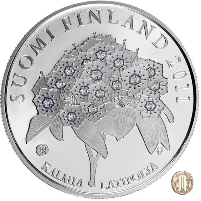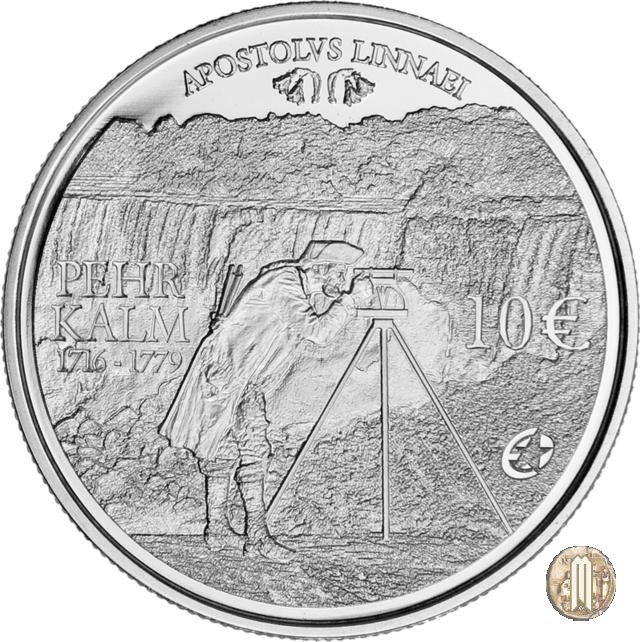 10 Euro 2011 Pehr Kalm, ja eurooppalaiset tutkimusmatkailijat Dritto: Al centro raffigurazione di una pianta di kalmia latifolia, sul giro in alto la legenda SUOMI FINLAND segue l'anno di emissione, in basso il segno di zecca e in circolo la legenda KALMIA LATIFOLIA. Verso: Al centro raffigurazione dell'esploratore intento a misurazioni del territorio delle cascate del Niagara, a sinistra su tre righe la legenda PEHR KALM 1716-1779, a destra il valore nominale e il simbolo del Programma Europa, in alto la legenda 'APOSTOLUS LINNAEI'. | |