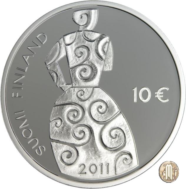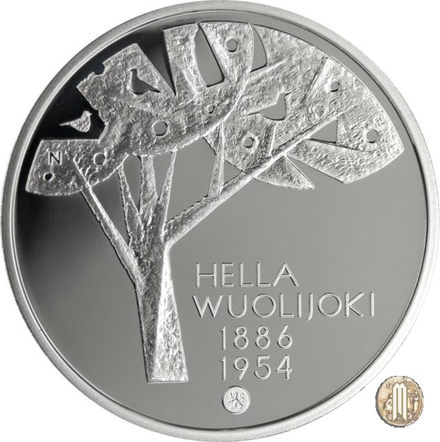 10 Euro 2011 Hella Wuolijoki Dritto: Al centro figura stilizzata di donna, a destra valore nominale, sinistra sul giro la legenda SUOMI FINLAND, in basso l'anno di emissione. Verso: Al centro un albero stilizzato, nel campo basso destro la legenda su quattro righe HELLA WUOLIJOKI 1886 1954, completa la moneta in basso il segno di zecca. | |